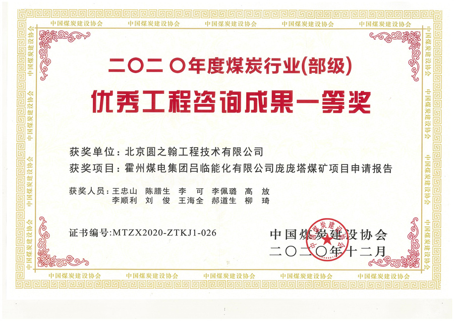 庞庞塔煤矿优秀工程咨询成果一等奖