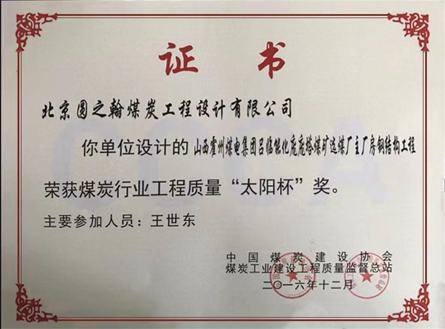 煤炭行业工程质量“太阳杯”奖